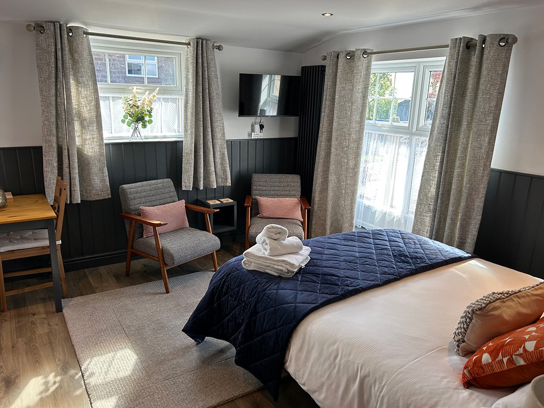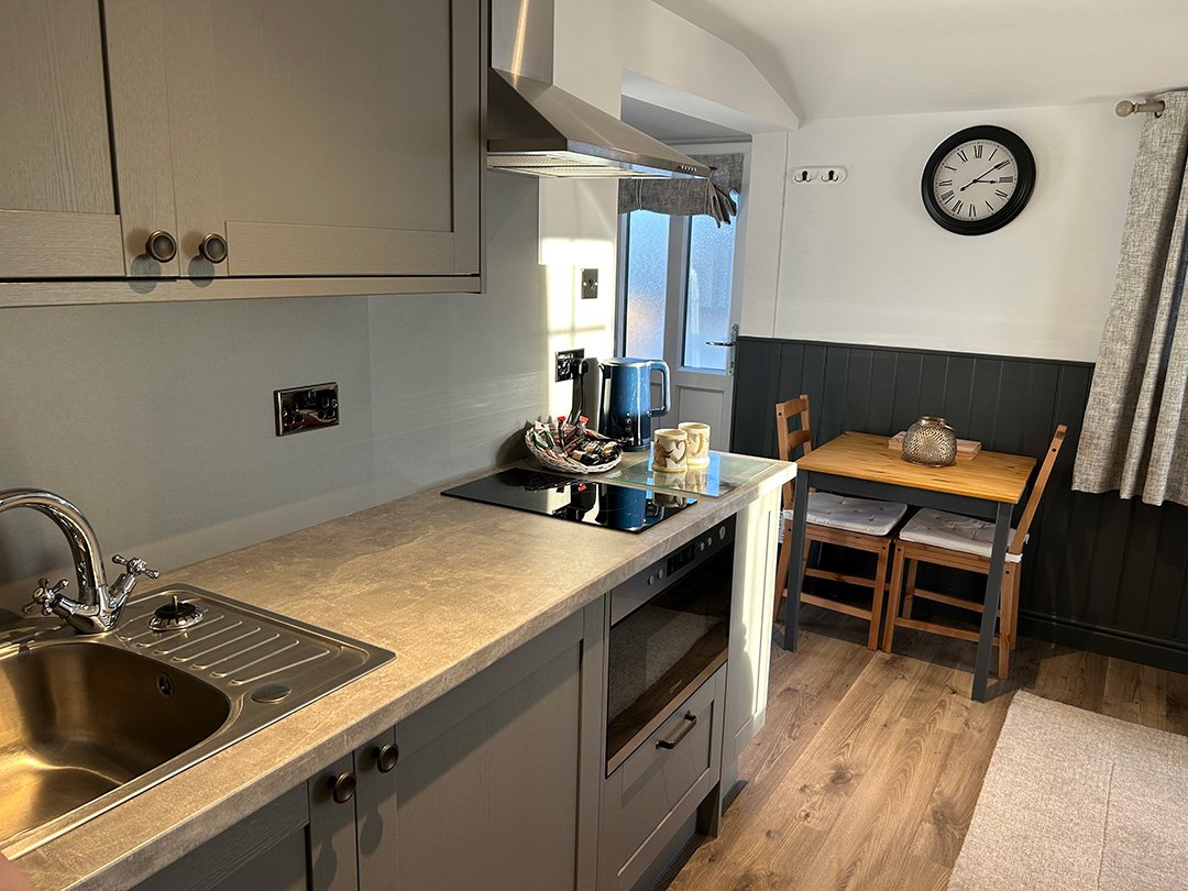 Whether it’s a quick breakfast or a light supper, the compact yet fully equipped kitchenette has you covered — complete with kettle, toaster, microwave/grill, hob, and all the kitchen essentials.
